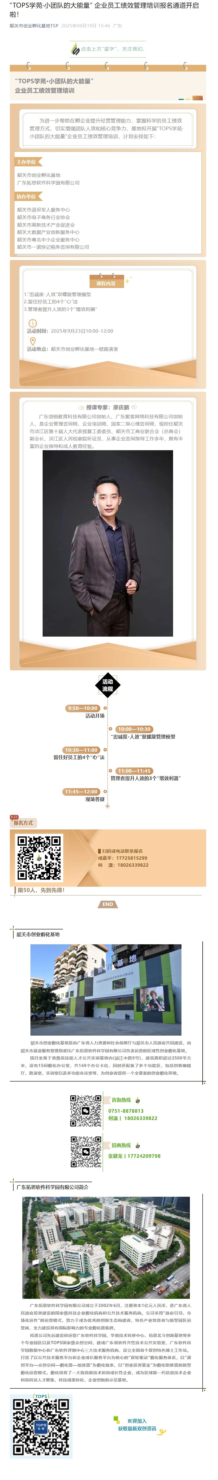 2025年9月23日,韶关市创业孵化基地顺利举办“TOPS学苑·小团队的大能...